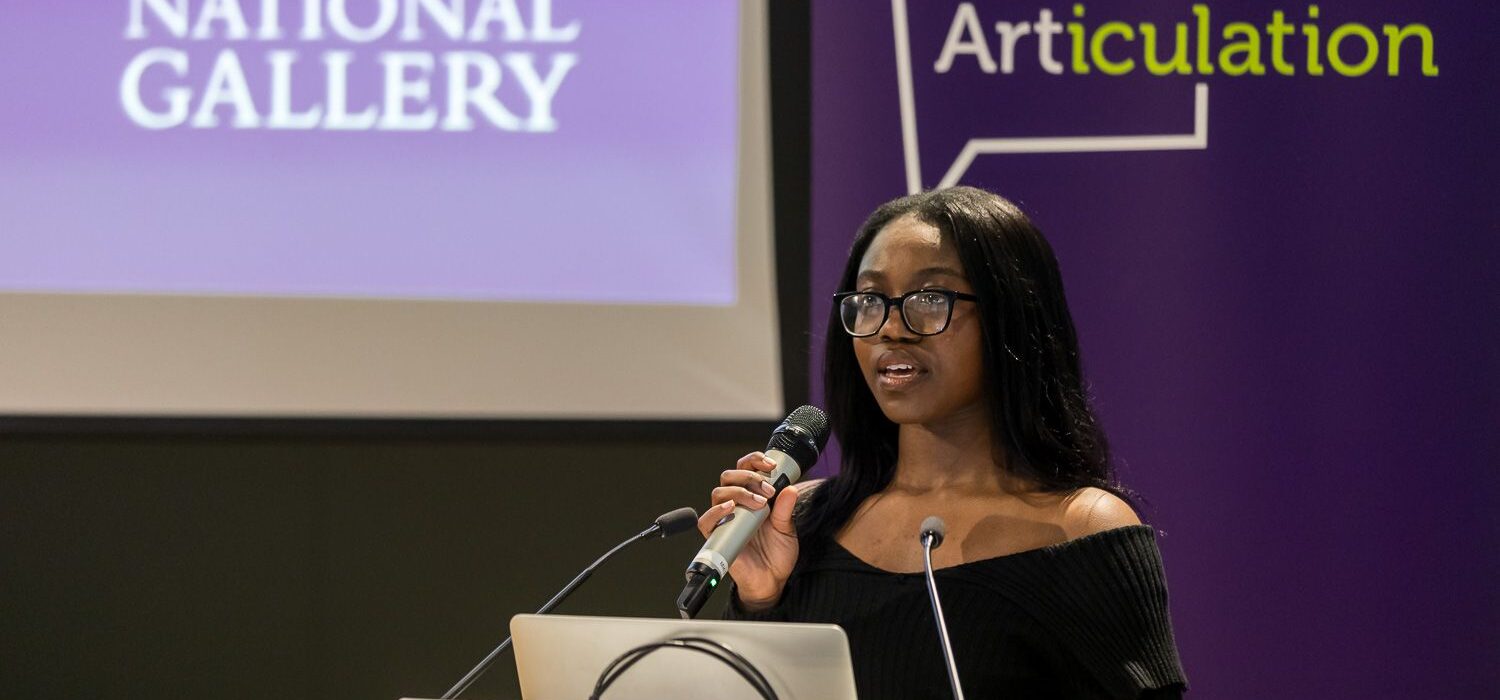 We are incredibly proud of our student, Thabisile, who delivered a strong presentation at the prestigious Articulation event run by the National Gallery in London. Thabisile’s insightful discussion impressed the audience and renowned artist Simeon Barclay, who praised all speakers for their “incredibly impressive and fantastic” presentations.